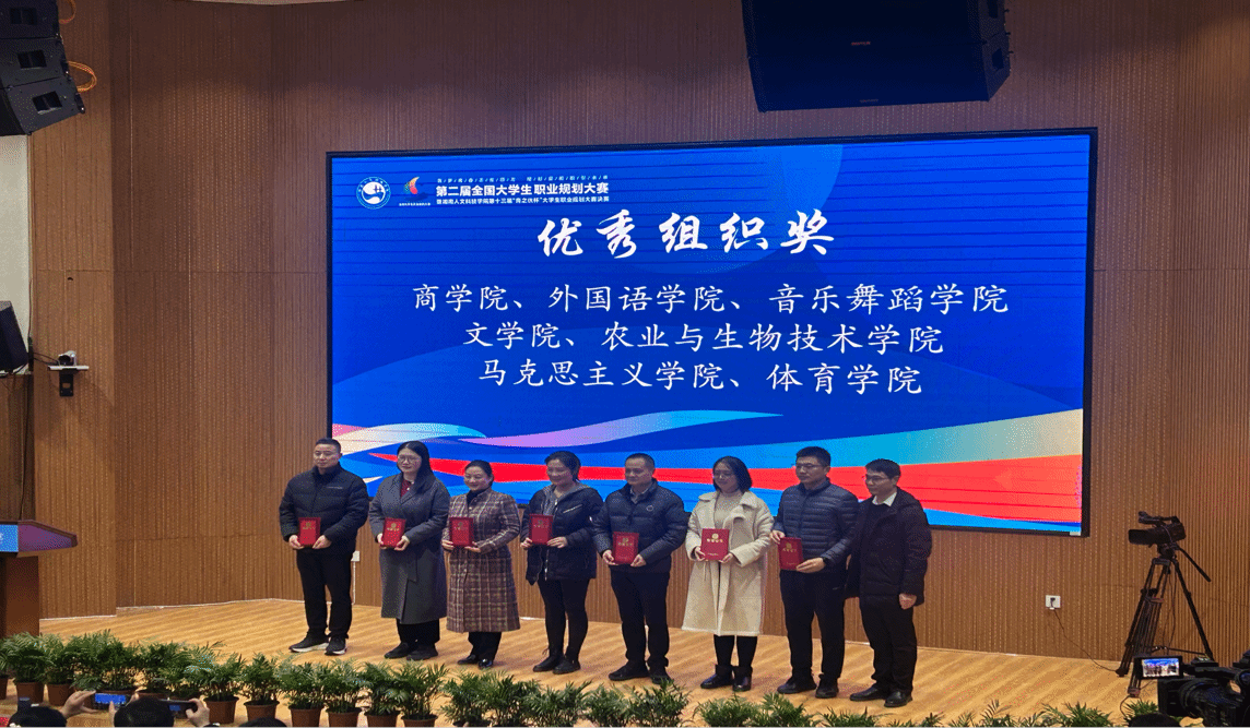 赛前,马克思主义学院高度重视本次比赛,学院领导予以全力支持、全程关心、全方位指导,多次组织赛前筹备会、赛前集训指导,从院内选拔到校级竞赛,群策群力、反复打磨,全程给予参赛选手们悉心指导与大力支持。决赛现场,参赛选手们结合个人成长经历、专业学习、获奖成果和实习实践,对自己的职业规划进行了精彩展示,将个人职业追求与家国情怀紧密相连。评委从目标契合度、通用素质、发展潜力等多维度对选手的现场答辩和职业规划进行了专业点评,并给予恳切建议。经过激烈角逐,22级思政2班邓莎、22级思政3班袁臻成分别获得就业赛道二、三等奖;23级思政2班黄如、24级思政1班杨芊意分别获得成长赛道一、三等奖;学工办主任张得才获优秀指导老师奖;马克思主义学院获得优秀组织奖。