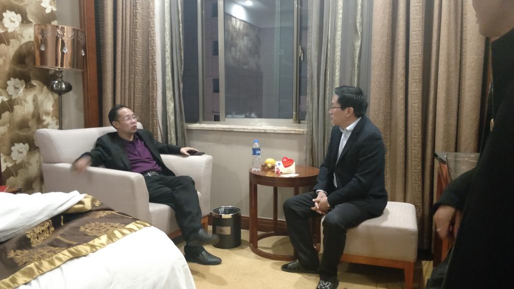 11月2日晚,校庆40周年前夕,太阳成官网党总支书记游训龙带队赴金和康年大酒店、鹏泰路桥大酒店及418华天大酒店校友接待处看望校庆返校校友。