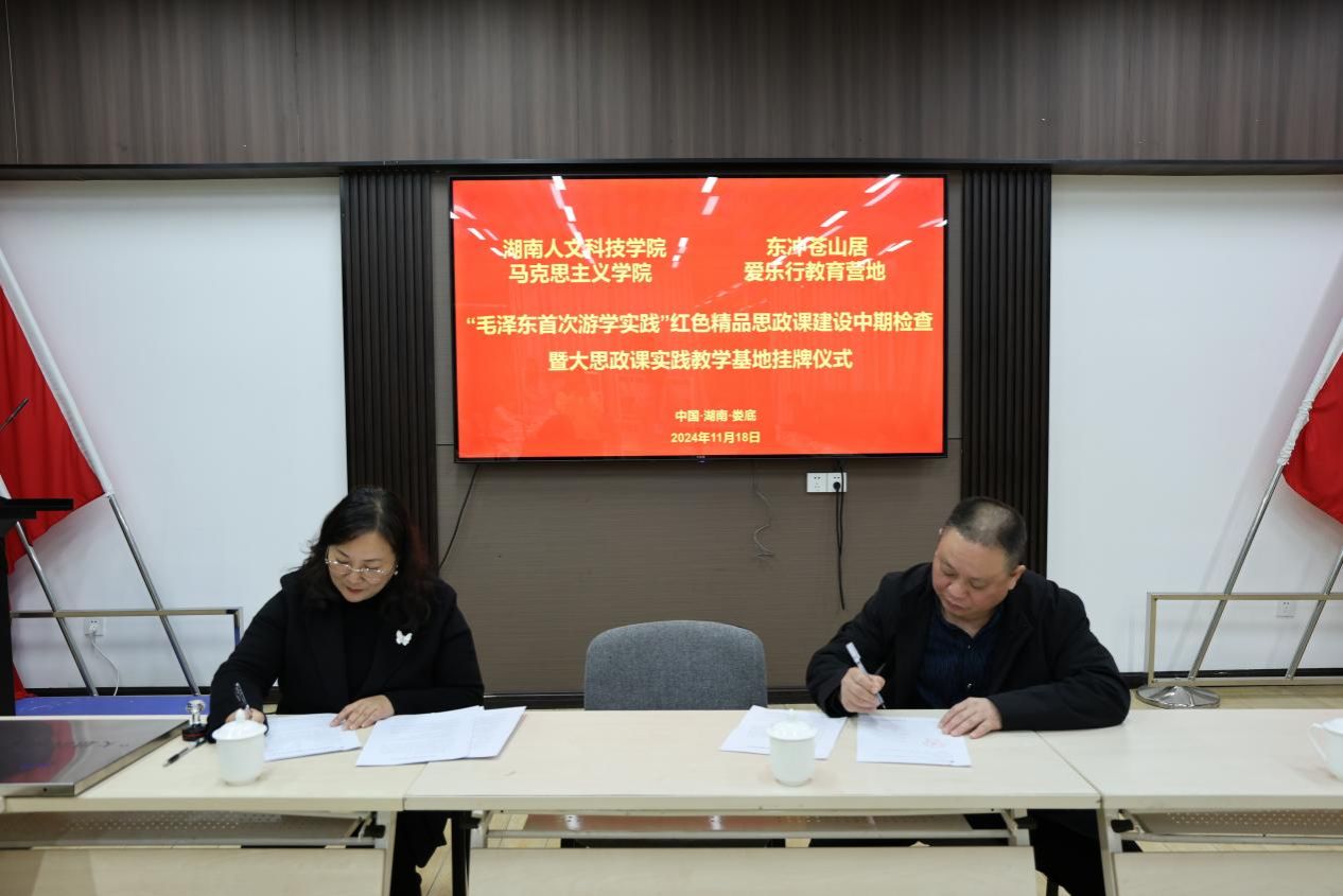 最后双方在融洽的氛围中签约揭牌,为后续深度合作拉开了序幕。陈莉表示,今后将以实际行动把爱乐行教育营地打造成赓续湖湘红色文化、挖掘红色文化内涵、保护红色文化资源、建设红色精品思政课的重要平台载体。下一步,双方将在课程优化升级方面持续发力,在人才培育、课程共建、理论研究、教育创新等方面加强合作和交流,实现优势互补、共创双赢,将红色教育的火种播撒得更广更远,切实为培养担当民族复兴大任的时代新人而不懈努力。(供稿人:肖羽婷 王安然 周智敏 供图人:伍海燕 一审:肖羽婷 二审:周玉文 三审:于意)