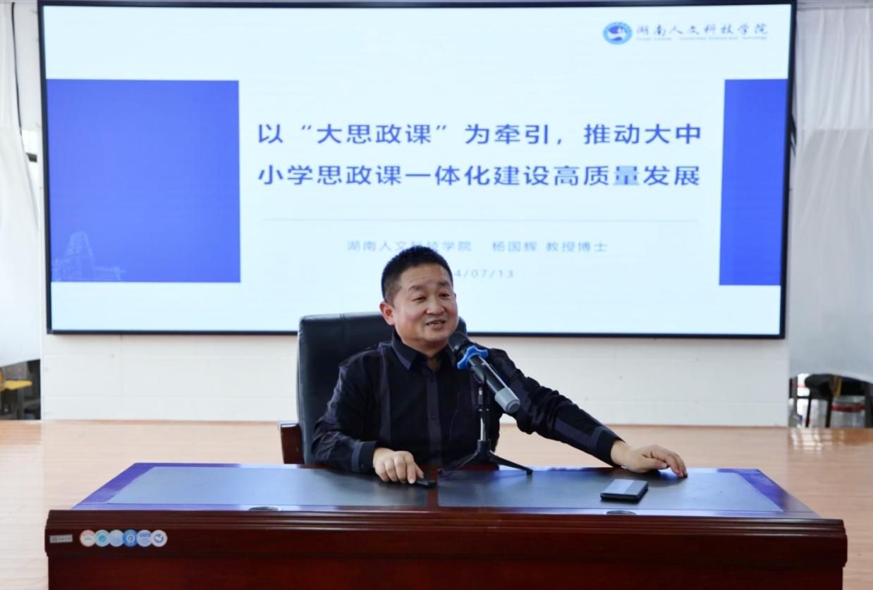 会上,杨国辉作《以“大思政课”为牵引,推动大中小学思政课一体化建设高质量发展》专题讲座。他聚焦“大思政课”建设面临的现实挑战,从“大格局、大时代、大体系”三大维度深入剖析思政课的育人内涵,结合一线教学实践经验提出创新性策略,为推动大中小学思政课一体化建设的高质量发展提供新的实践路径。23级思政三班李佩芬作为学生代表发言。她从视野、责任、行动三方面分享学习感悟与收获,表示将积极参与思政育人实践,为推动“大思政”共同体建设贡献青春力量。