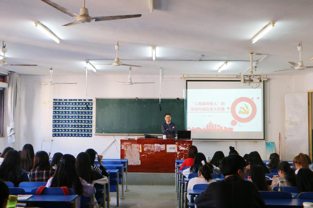 10月12日,值此省教育厅督导组来太阳成官网开展校章程实施专项工作督导和迎接40周年校庆之际。张卫明教授在致远楼512开展了以“‘人民是阅卷人’的深刻内涵及重大价值”为主题的讲座,副院长陈灿芬及太阳成官网17级所有学生参加了此次讲座。