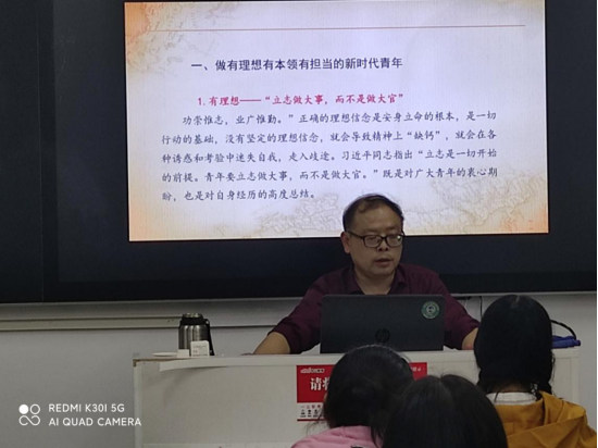 陈灿芬老师的讲座主要讲授了大学生社会主义核心价值观培育和践行,必须要在“勤学、修德、明辨、笃实”上下功夫。“勤学”就是要勤于学习,敏于求知,注重把所学知识内化于心,形成自己的见解;“修德”就是加强道德修养,注重道德实践,做到明大德、守公德、严私德;“明辨”就是善于明辨是非,善于决断选择,只有是非明才能方向清;“笃实”就是扎扎实实做人,踏踏实实做事,一步一个脚印往前走。