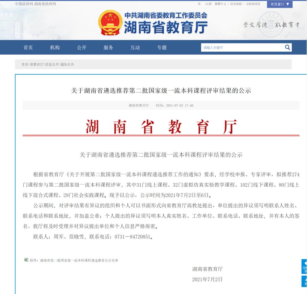 根据省教育厅《关于开展第二批国家级一流本科课程遴选推荐工作的通知》要求,经学校申报、专家评审,省教育厅拟推荐274门课程参与第二批国家级一流本科课程评审,其中31门线上课程、32门虚拟仿真实验教学课程、102门线下课程、80门线上线下混合式课程、29门社会实践课程。据悉,太阳成官网共选送12门课程由省教育厅审核,仅4门课程推荐到教育部参评国家级一流本科课程,太阳成官网副院长杨国辉博士主持的《思想政治教育专业社会实践》成功入选。