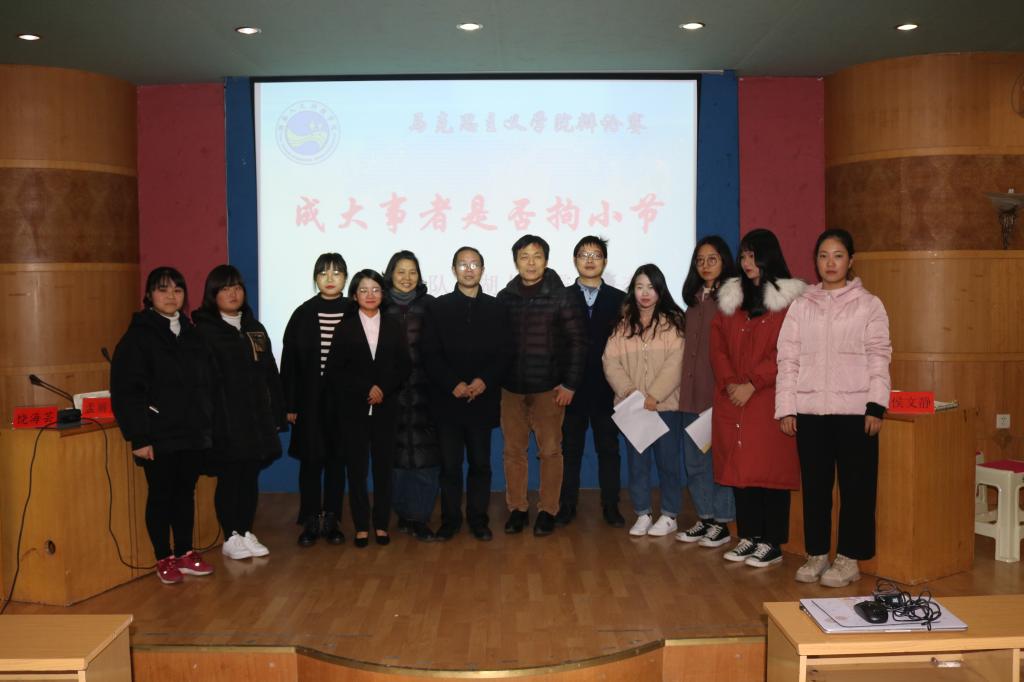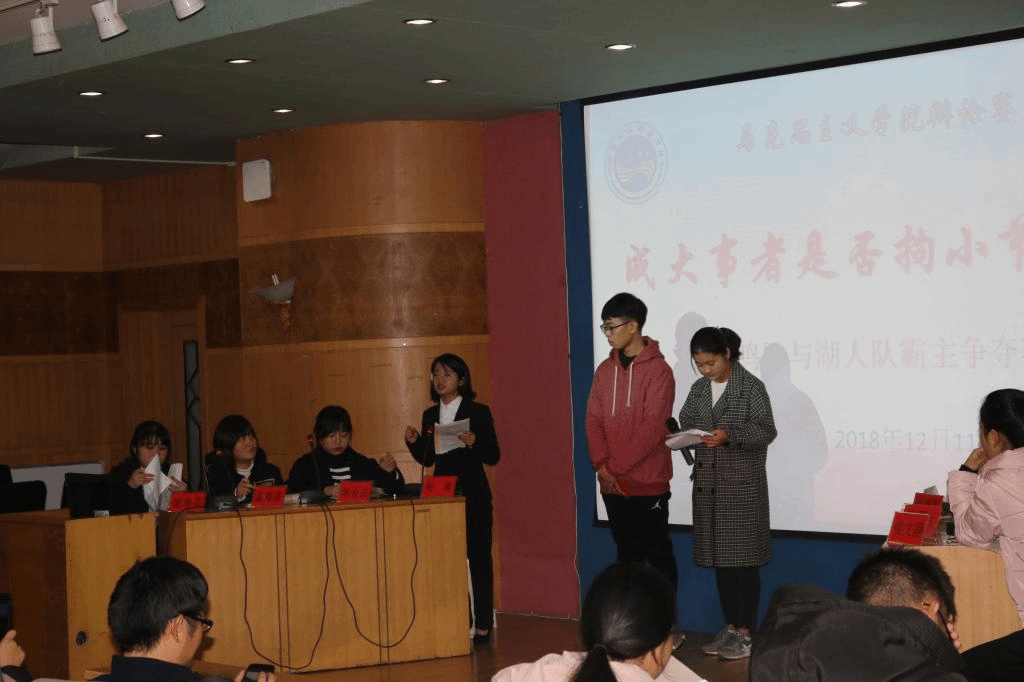 12月11日晚,太阳成官网18级辩论赛决赛在养根楼报告厅正式开展。参加此次辩论赛的有太阳成官网党总支书记游训龙教授,谢科峰博士,周玉珍、张得才老师以及18级的同学们。