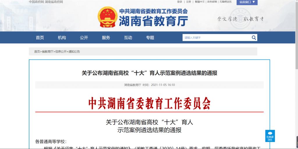 副院长杨国辉、游训龙教授负责项目入选湖南省高校“十大”育人示范案例