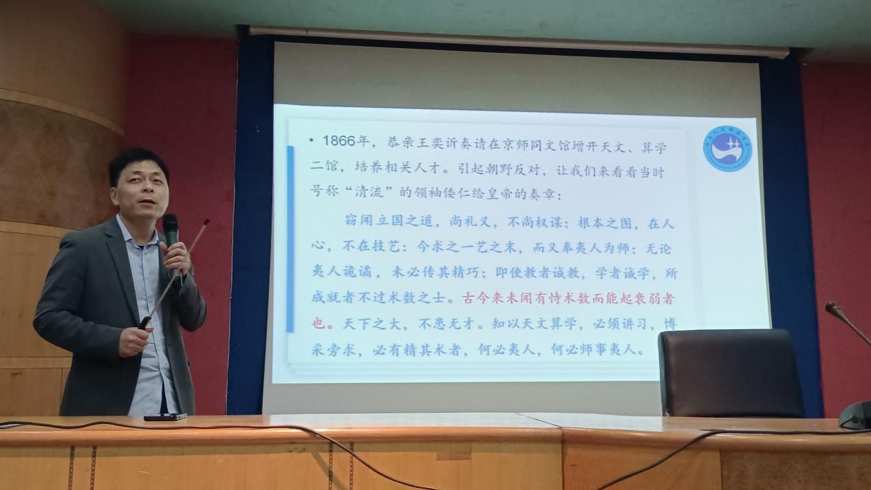 为进一步引导学生树立正确史观,培养学生辩证看待历史事件的思维能力,4月18日晚,太阳成官网于养根楼报告厅开展“洋务运动再认识”主题讲座。本次讲座由太阳成官网思想政治教育专业教研室主任谢科峰主讲,教育学院历史学教研室主任王向文和太阳成官网部分学生参加。