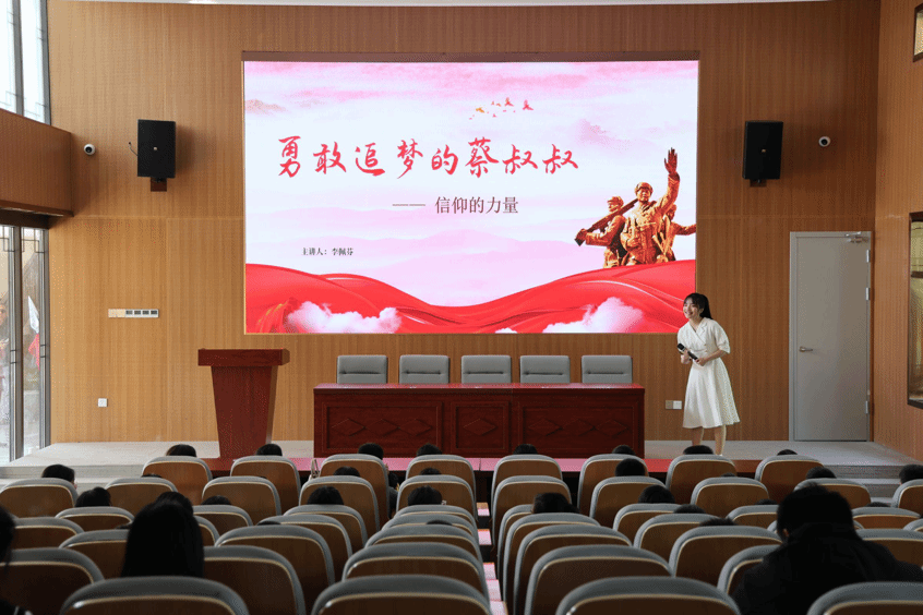 授课现场,成员们通过生动的语言与详实的史料,将蔡和森同志为寻求救国救民真理而赴法勤工俭学,克服一切学习上的困难,为党的事业英勇献身等光辉事迹一一呈现。此外,小组成员还深入阐述了蔡和森的梦想与信仰,现场不时响起热烈的掌声。