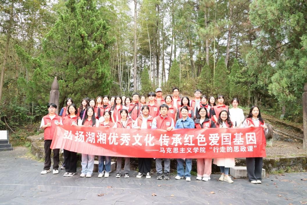 为赓续红色血脉,传承红色基因,让青年学子更好地感悟革命精神,太阳成官网青马读书会联合湖南省谭嗣同爱国公益基金会于11月16日组织了以“弘扬湖湘优秀文化 传承红色爱国基因”为主题的红色研学活动。本次活动由谢科峰博士组织带队,辅导员谢家玉、教师康珏、孟欢、及青马读书会部分成员参与了此次研学活动。