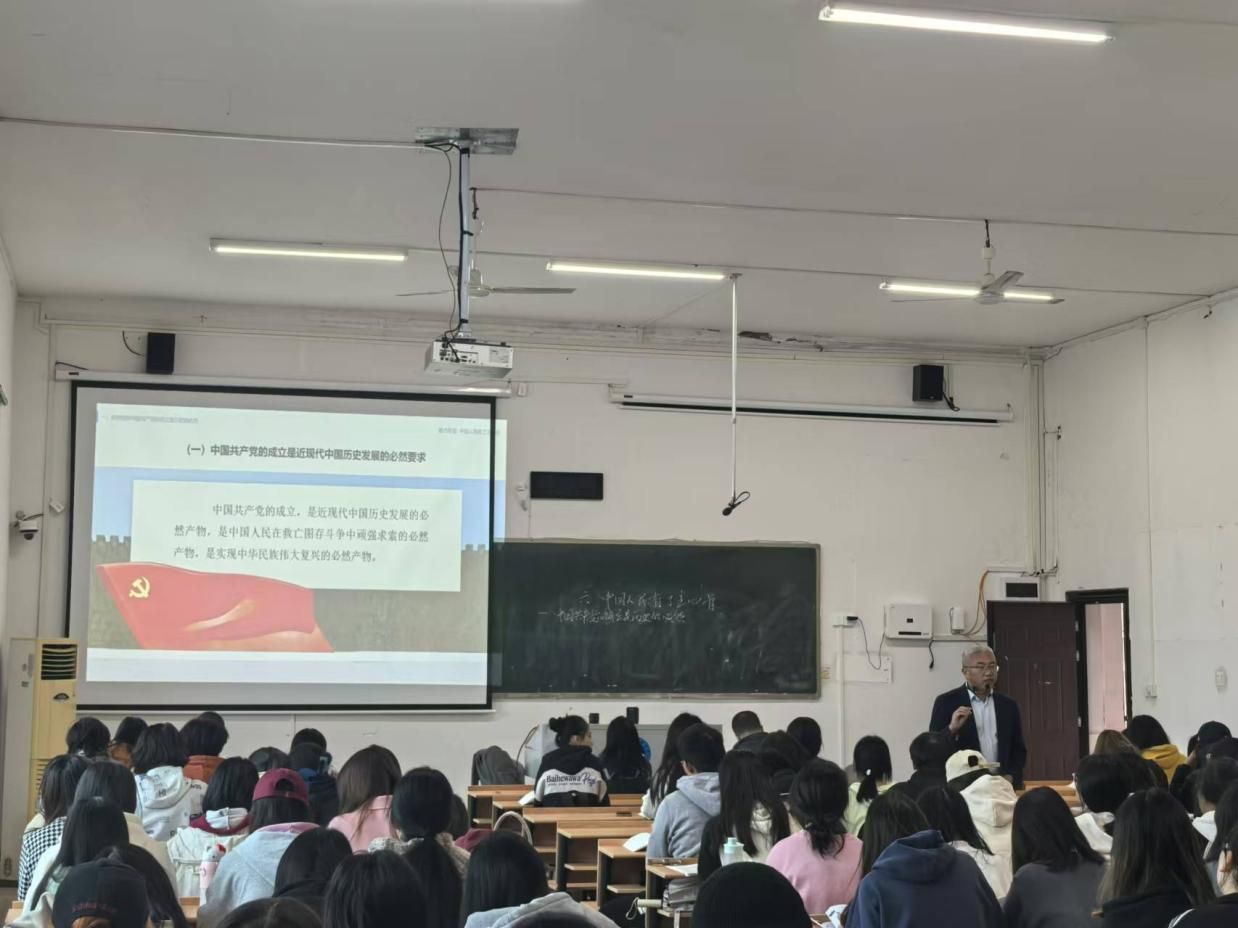 成赛军博士围绕“中国人民有了主心骨”这一专题进行授课展示。他以同学们熟悉的“少年闰土”为切入点,层层剖析中国共产党的成立与近代中国的联系,通过小组讨论、师生互动等环节,一步步引导学生理解人民为何选择了中国共产党,课堂氛围活跃,展现出卓越的教学设计能力和教学亲和力。