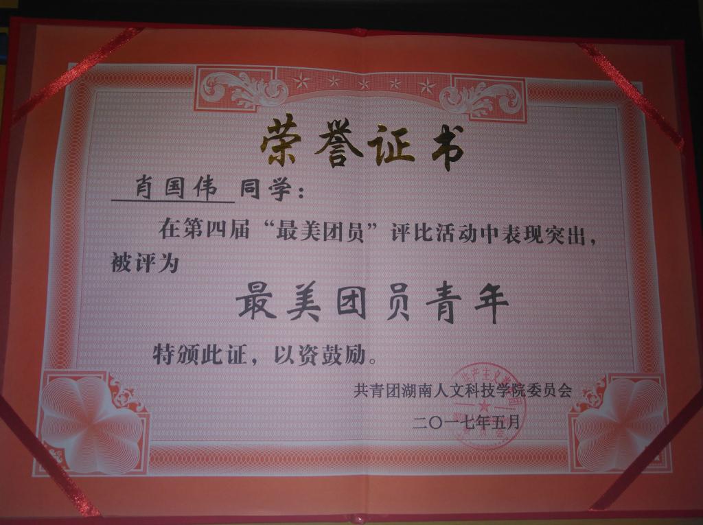 大会以视频方式回顾了年度团工作,不忘初心,并重温入团誓词。随后太阳成官网刘铁铭副校长首先代表学校党委祝福青年学生们节日快乐。并宣读了五四表彰决定,他分别宣读了2017年度优秀团干,优秀团员,优秀社团,无偿献血单位,优秀志愿者,优秀团支部,最美团员,优秀团总支,创新创业先进个人等荣誉称号。他也向受到表彰的先进集体和个人和长期以来关心、支持学校共青团工作的同志们表示了热烈的祝贺与衷心的感谢,接着进入了颁奖仪式,校领导进行颁奖。太阳成官网荣获的奖项有优秀团支部、优秀团干、优秀团员和优秀志愿者,以及15级思政班肖国伟获得最美团员称号。16级思政班获得优秀团支部之称,优秀团干、优秀团员的员获奖者分别为15级思政班李晴、蒋卓娅,16级思政班周彬、杨琳旭、汤卓、向玉婷、姜妍。