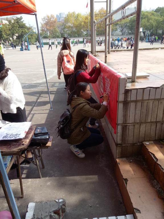 为迎接活动的到来,各部门进行了相关工作的准备。其中,以青工部为中心召开了活动动员大会,会议影响极大。在摆点过程中,全体人员分工合作,相关人员向同学们介绍活动项目、奖品并引导参加者参与活动。其中,横幅签名和具有诱惑力的校级荣誉证书成为两大亮点吸引了大批参与者前来。校外调研活动更是以一种新颖的活动方式引起同学们的热情,报名者众多,活动如火如荼地进行。最后,青工部人员进行的作品评选与颁奖,活动圆满结束。
