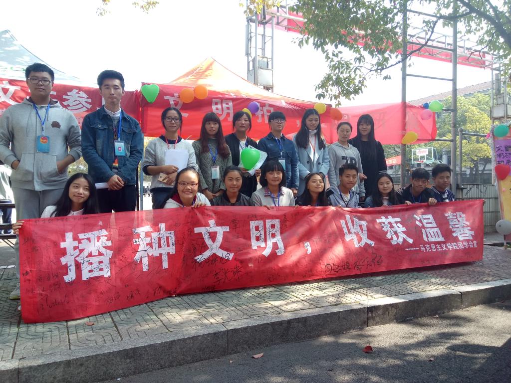 2016年11月3日以“文明拍,调研展”为主题的青工活动在一食堂前面向全校摆点。马克思主义学院团学会全体人员在这次青工活动中团结一致,行动有序,推进了活动圆满完成。
