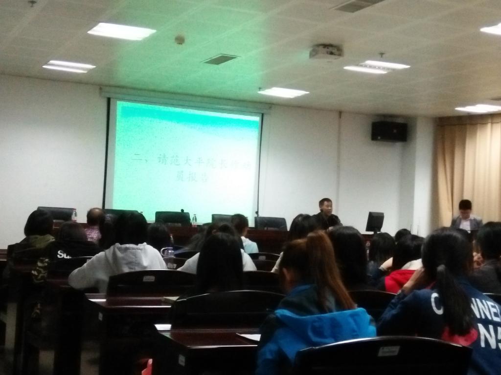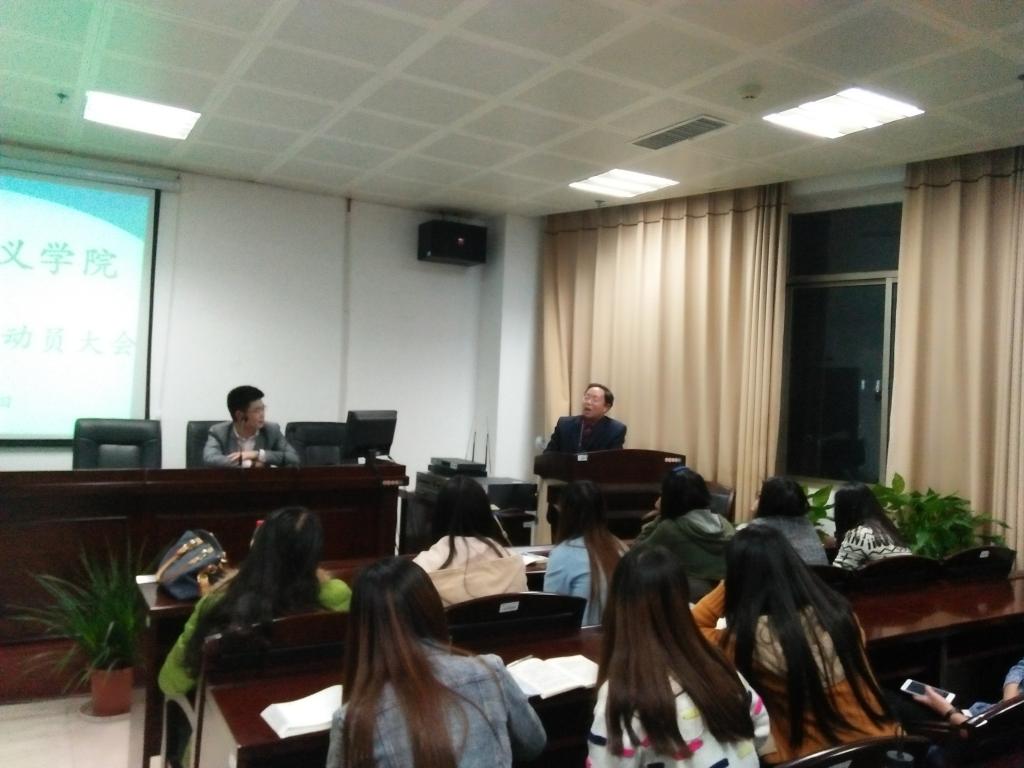范大平院长首先作动员报告,鼓励同学们积极参与,用心挑战,做好作品,增强作品的竞争力,调动了同学们参加挑战杯的热情,并强调学院会尽全力提供条件保障,支持同学们参加挑战杯及创新创业大赛。随后,学校挑战杯官方宣传片吸引了大家的注意,在观看完太阳成官网挑战杯宣传片后,同学们更加表现了对挑战杯的浓厚兴趣。太阳成官网挑战杯指导教师代表孙淇庭老师上台对挑战杯的选题进行了简要的指导,强调选题的重要性。之后,校团委书记谢柳老师向大家介绍了挑战杯大赛的概况,并对近几年太阳成官网挑战杯竞赛的情况进行了介绍,她鼓励大家要积极参与挑战杯等系列比赛,通过参与创新创业项目不断提高自我,成就自我。最后,太阳成官网党总支书记游训龙老师对本次大会进行了总结,他首先肯定了此次大会的作用和意义,认为此次会议召开的比较及时,很有必要;然后,他简要回顾了太阳成官网思政专业参与挑战杯的辉煌历史,鼓励大家继续保持这个优良传统;最后,他强调学院会全力支持大家创新创业,希望同学们迅速行动,并以幽默生动的语言结束了本次动员大会。
