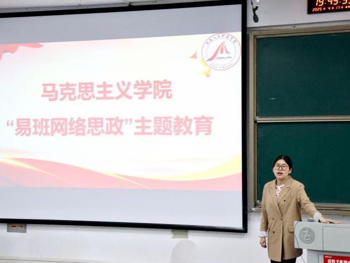 为积极顺应网络时代发展潮流,切实加强和改进大学生思想政治教育工作,4月17日晚,马克思主义学院于致远楼209开展“易班网络思政”主题教育活动。辅导员谢家玉主讲,马克思主义学院全体学生干部参加。