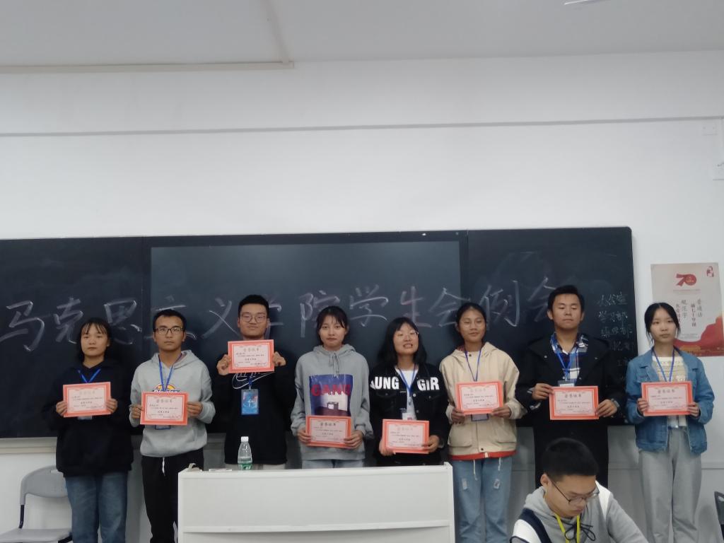 首先,由各部门干事代表对上个月的工作总结以及下个月的工作规划进行发言。随后,院团总支书记张得才发表讲话,先对各部门工作总结进行评价,对上阶段的学生会工作给予肯定,同时指出各部门在工作中的不足之处,希望各部门加强对外宣传、汇报总结、财务、遵守规矩和服从这五个意识。接着,院学生会主席王刘聪发言,她指出几次活动的欠妥之处,希望各部门引起重视并加以改正。会议最后,为鼓励大家继续积极认真的态度参与工作,进行颁奖环节,优秀工作者上台领奖并拍照留念。