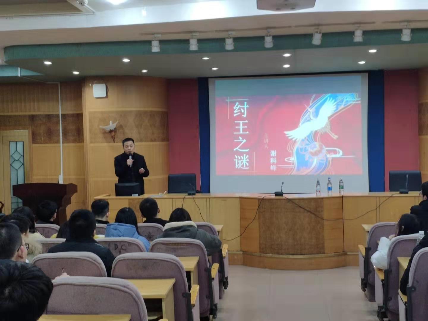 12月27日晚7点半,马克思主义学院谢科峰博士在养根楼报告厅举办了一场题为《纣王之谜》的学术讲座,吸引了包括马院在内的全校一百多名学生参加。