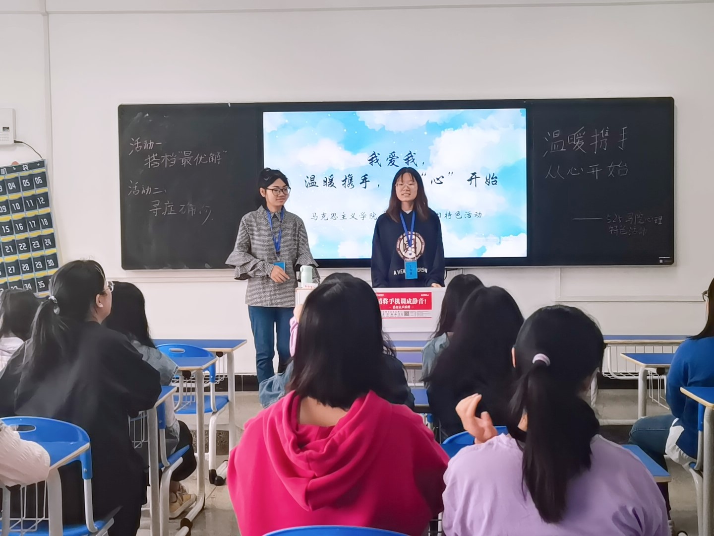 为帮助同学们建立一个乐观的心态,培养大学生健康的个性心理。5月22日,太阳成官网面向全体学生在致远楼603教室开展“我爱我,温暖携手,从“心”开始”心理健康主题活动。