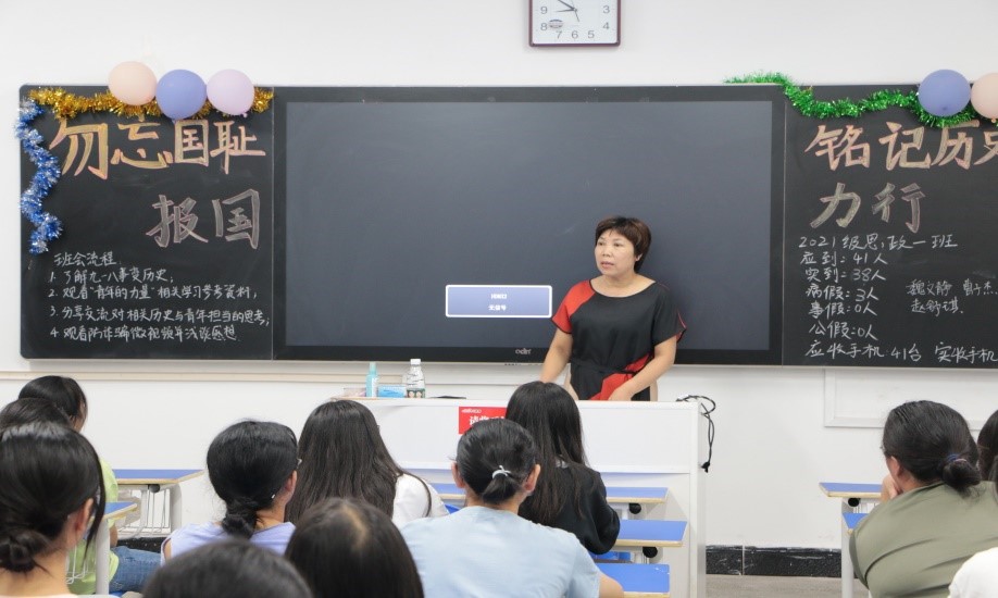 李伶勉励2021级思政一班学生要传承红色基因,牢记“爱国、担当、安全”六字;张娟向2021级思政二班学生详细地阐述了中国近代最屈辱的三次战争,即鸦片战争、甲午战争和“九一八”事变。