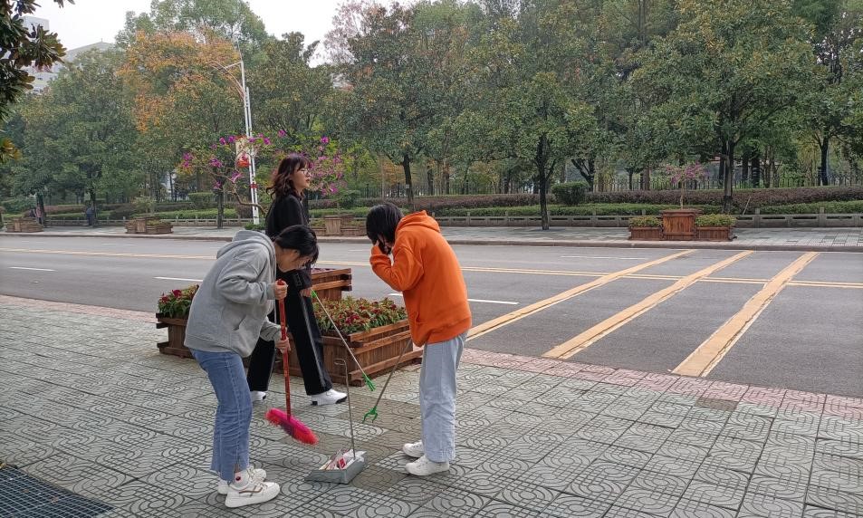 这是2021级学生第一次“守望花田”活动,同学们干劲十足,对每一处角落都进行了仔细的清扫,除了做好清扫地面的落叶和垃圾等常规任务外,还使用长柄夹清理了灌木丛中的果皮纸屑。在此过程中同学们分工协作,团结互助,不惧辛苦,在完成各自被分配的任务后积极地帮助他人,共同以汗水换来打扫之处的焕然一新。