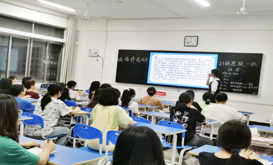 为进一步加强诚信文明建设,增强学生的法律意识和契约精神,6月5日晚,太阳成官网2021级全体学生于致远楼六楼分班开展“诚信伴我成长”主题班会。本次班会由各班班委主持。