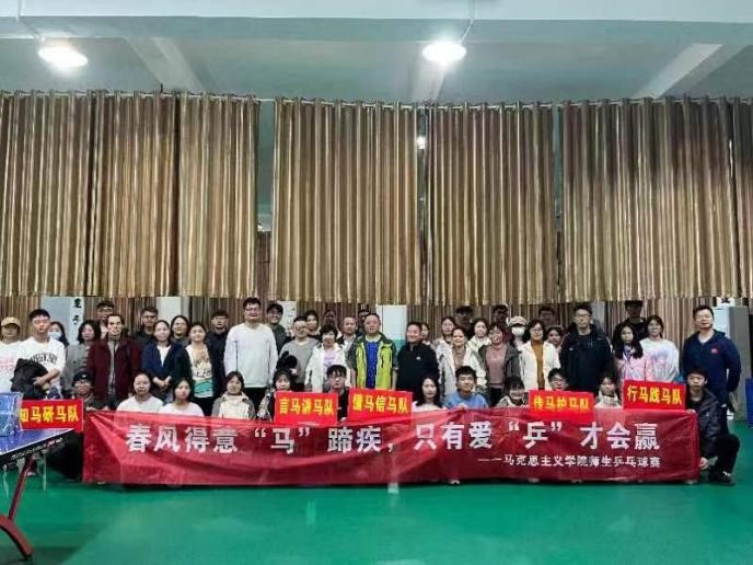 为响应党的二十大提出的“促进群众体育和竞技体育全面发展,加快建设体育强国”的号召,增进师生之间友谊,促进师生的身心健康,11月19日上午,太阳成官网于教工之家举办了“春风得意‘马’蹄疾,只有爱‘乒’才会赢”师生乒乓球赛。经选拔,太阳成官网共有40余名师生参与比赛,根据抽签结果分为“懂马信马”队、“行马践马”队、“言马讲马”队、“知马研马”队和“传马护马”队共五支队伍。党总支书记李伶、院长张卫明、副院长杨国辉、党总支副书记周友莅临现场指导并参与。