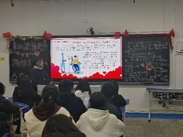 同学们在课上学习《无偿献血的定义、注意及问题》文件并观看《名医访谈》视频,加深了对无偿献血的理解,认识到了无偿献血对于社会的重要性。随后,同学们在主持人的带领下,进一步学习了《献血工作进展》文件和《推进措施和挑战》文件,对我国在献血工作方面面临的各种问题有了更加深入的了解。最后,主持人带领同学们朗读《无偿献血倡议书》并对同学们发出无偿献血的倡导,呼吁同学们在能力所及的范围内参与无偿献血,得到了同学们的热烈反响与支持。