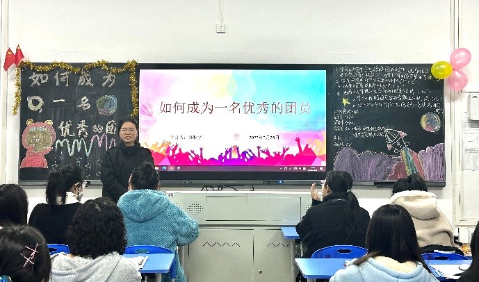 团课上,同学们共同学习《中国共产主义青年团员》、《共青团员的义务和权利》、《怎样做一名合格的团员》文件,观看《什么是共青团员》、《团员成长史》视频,让同学们对团员有基本的了解从而提高团员对自我身份的认知,增强自信心、强化责任意识。同学们认真观看《我们团员始终在路上》视频,深入了解团员的责任和义务,向优秀的团员学习。在团课的最后,同学们分组讨论如何成为一名优秀的团员。