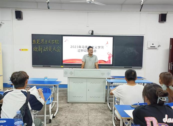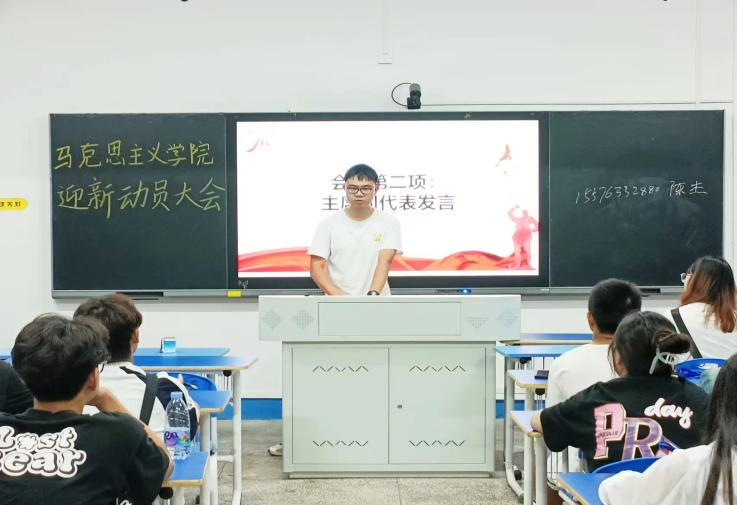 学生分会主席周裕发进行发言,他强调,迎新工作是学院的大事,是学院管理水平的重要体现,要全员参与、全力配合、全力以赴做好开学迎新各项工作。统筹协调,夯实安全稳定基础。