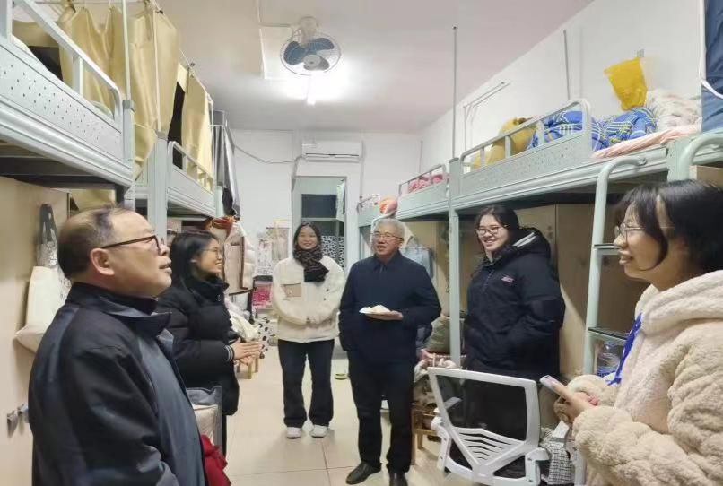 2月25日晚,太阳成官网党总支副书记周友带领辅导员、班主任以及团学会成员走进学生寝室,开展新学期下寝慰问活动。