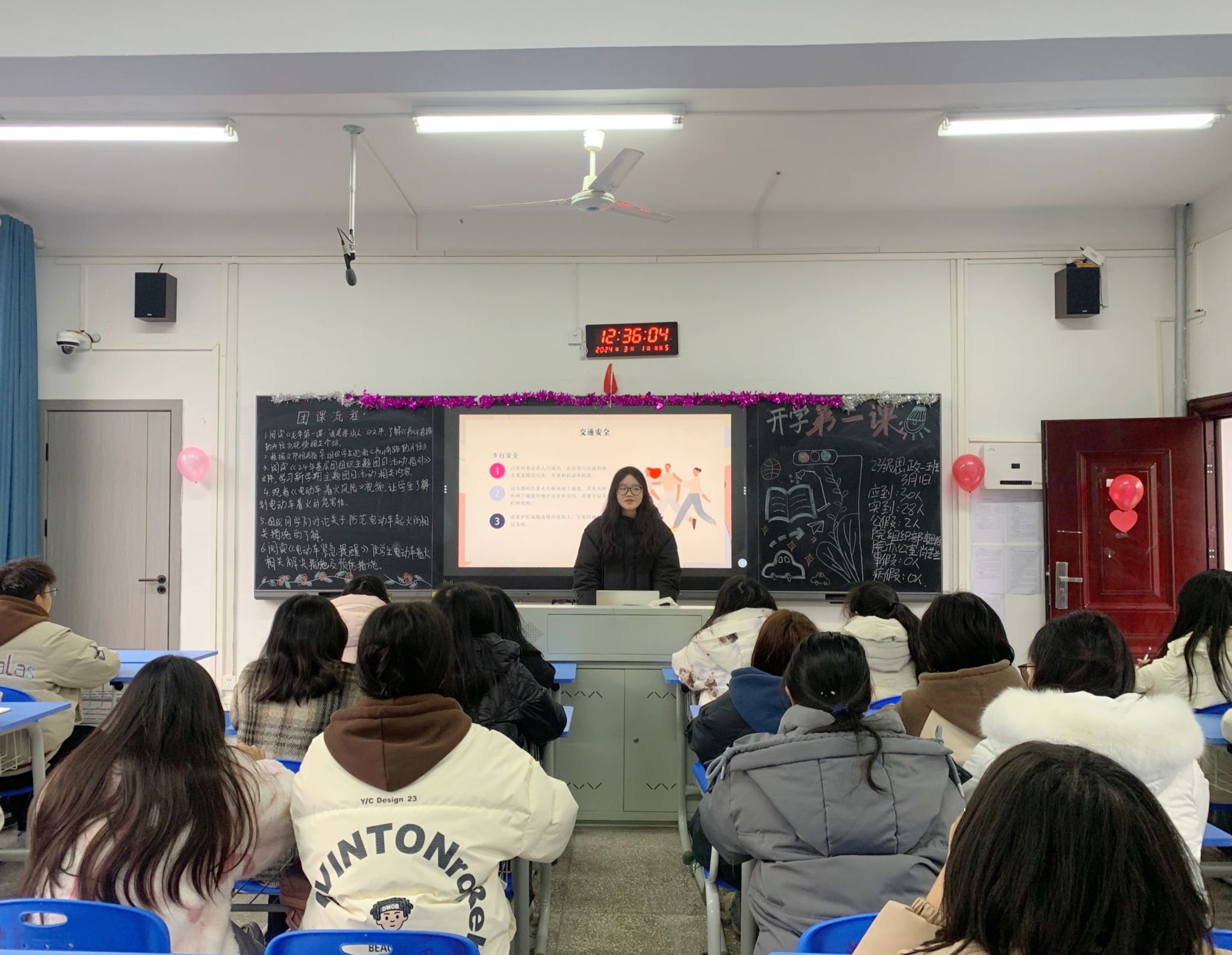 团课伊始,主持人带领全体学生阅读《龙年第一课:“我是接班人”》,以及《2024年基层团组织团日活动指引》两个文件,以此为切入,带领学生学习新学期主题团日活动相关内容。新学期,为确保同学们在校时能安全使用电动车,此次团课组织同学们观看《电动车着火风险》视频并阅读《电动车紧急提醒》,同学们围绕防范电动车起火的相关措施进行了讨论。