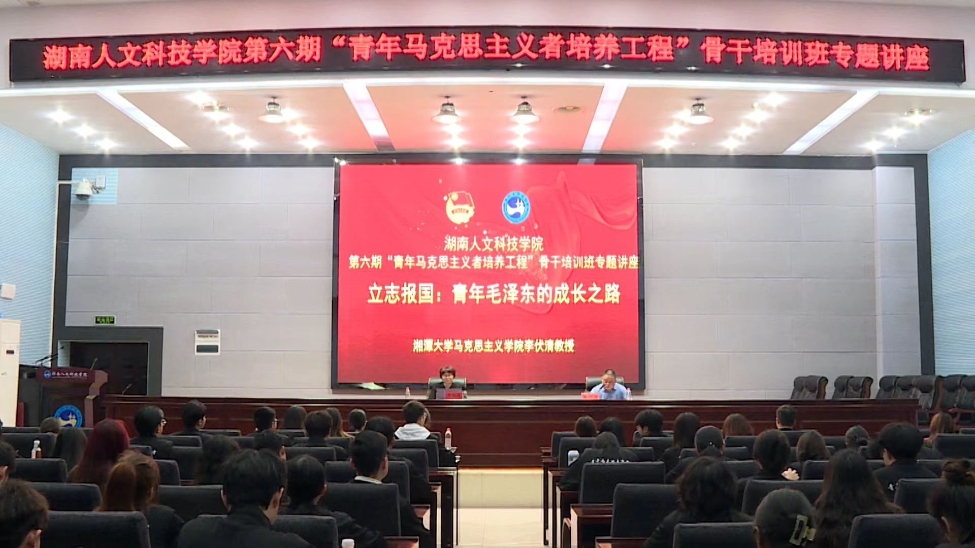 4月18日晚,湘潭大学马克思主义学院李伏清教授在图书馆二会议室为44118太阳成城集团第六期“青年马克思主义者培养工程”骨干培训班作题为“立志报国:青年毛泽东的成长之路”的讲座。太阳成官网马克思主义学院相关领导老师以及100余名培训班成员参加,讲座由马克思主义学院院长张卫明教授主持。