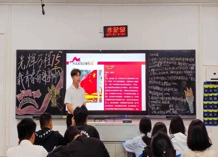 主持人通过回顾新中国成立以来的光辉历程,带领同学们认真阅读《习近平总书记在庆祝中华人民共和国成立75周年招待会上的讲话》文件,学习其讲话精神,激发自身对国家的自豪之感。进而,主持人以《75年 我们正年轻》这一视频为引,聚焦生活实际中的变化,组织同学们讨论并分享个人故事,从自身角度出发,切实领会祖国变化。此外,同学们仔细研读了《把中国式现代化不断推向前进》文件,不少学生表示:“我们青年大学生应当增强对推进中国式现代化的责任感和使命感,不断为实现祖国繁荣而奋斗。”