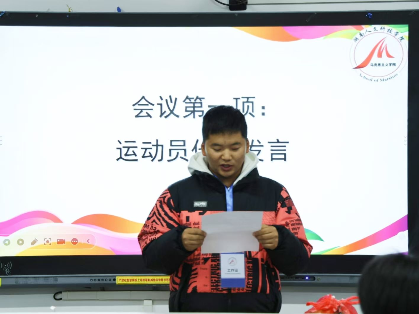 11月20日中午,马克思主义学院2024年第十八届校运会动员大会于若谷楼成功举行。全体参赛运动员和团学会全体成员参加了本次会议。