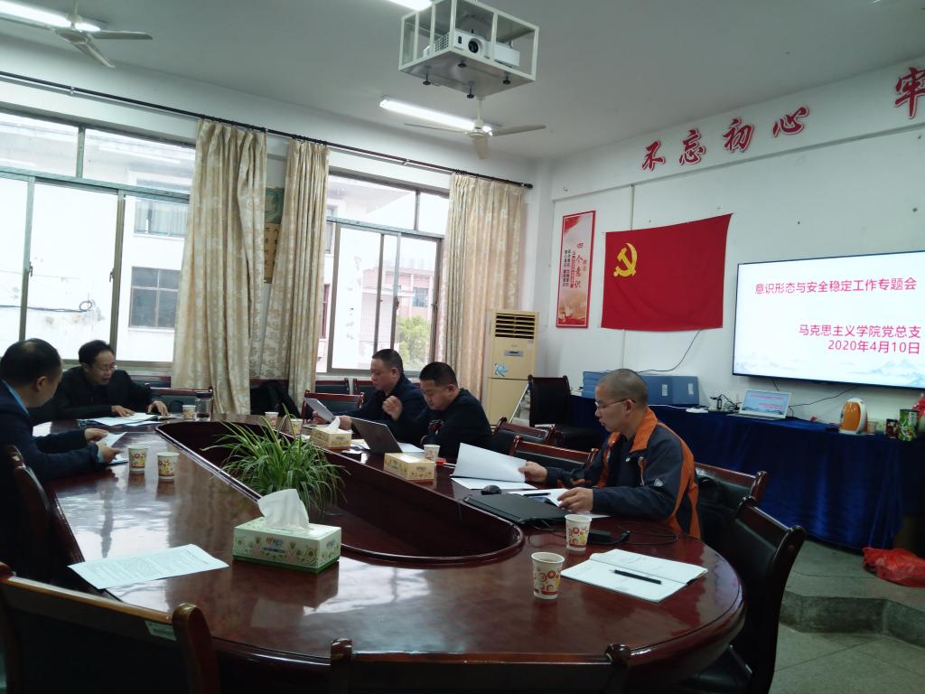 4月10日下午,太阳成官网党总支召开意识形态与安全稳定工作专题会在致远楼516会议室召开。会议由院党总支书记游训龙主持,全体党总支成员参加。