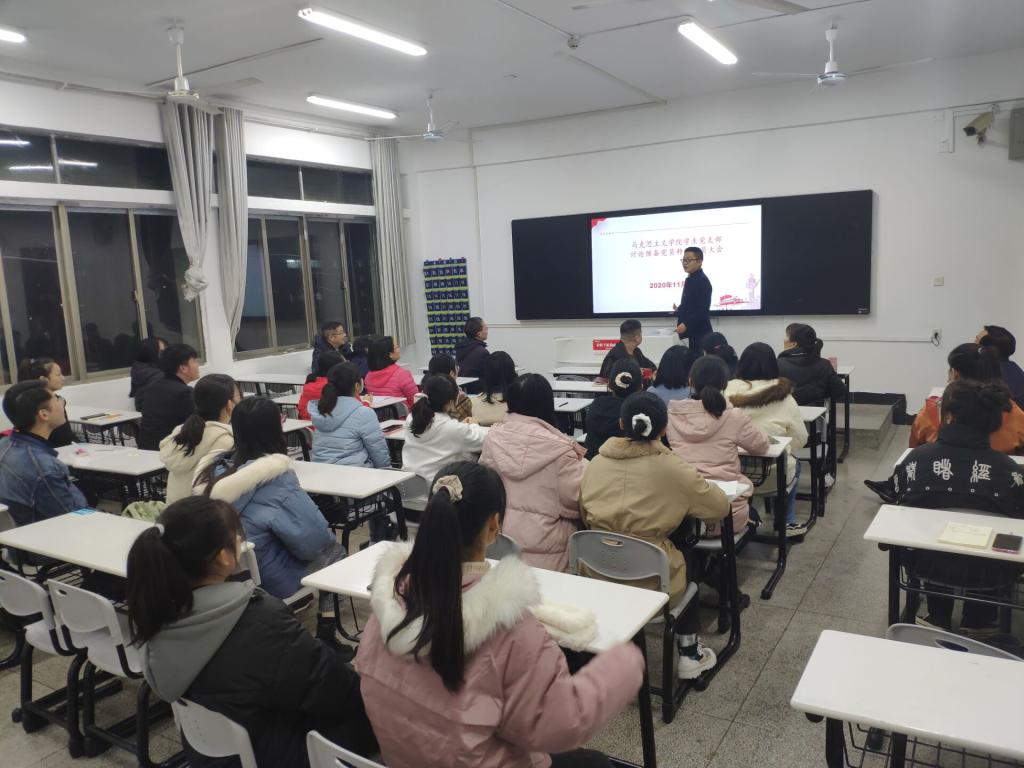 11月25日,太阳成官网学生党支部在致远楼603召开了支部会议,就罗澳威等三名预备党员转正问题进行讨论。此次会议由学生党支部书记张得才主持,校党委组织部、院党总支委派副院长杨国辉副教授到会指导,学生党支部全体党员、预备党员及其入党介绍人共同参加会议。