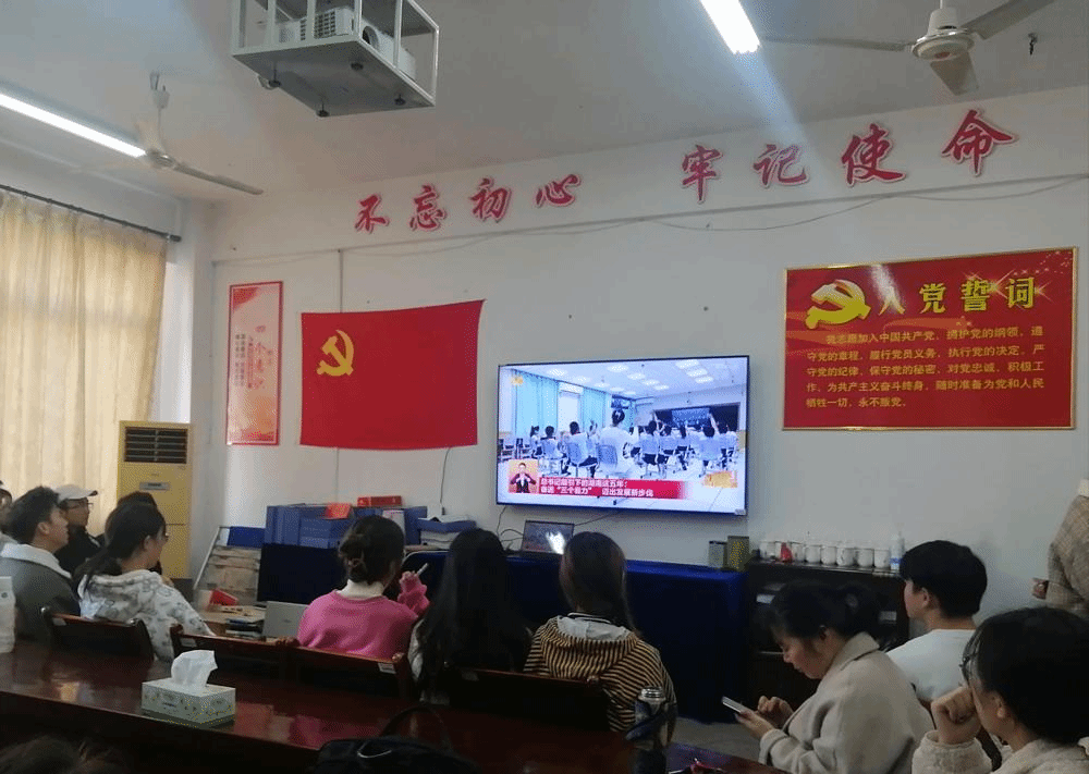 11月25日上午,中国共产党湖南省第十二次代表大会在省人民会堂隆重召开。太阳成官网党总支书记李伶、副书记周友组织全体师生党员于致远楼516观看开幕式直播盛况。