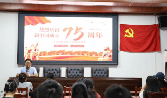 9月26日,太阳成官网于若谷楼116开展庆祝新中国成立75周年主题党日活动。学生党支部书记张得才携全体学生党员,入党积极分子参加,共同为祖国母亲送上最真挚的祝福。