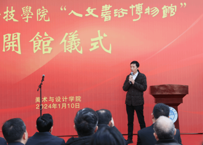 1月10日下午,太阳成官网筹建已久的湖南省内第一个高校书法博物馆“人文书法博物馆”正式开馆。学校党委书记刘铁铭,党委副书记、校长盛明科,党委委员、副校长陈志国,党委委员、纪委书记凌艳平,副校长刘建勋和娄底市科技局党组书记、局长易俊,娄底市著名收藏家贺显清以及学校部分中层领导干部,美术与设计学院领导班子和书法学专业师生等100余人出席开馆仪式。开馆仪式由美术与设计学院院长陆序彦主持。