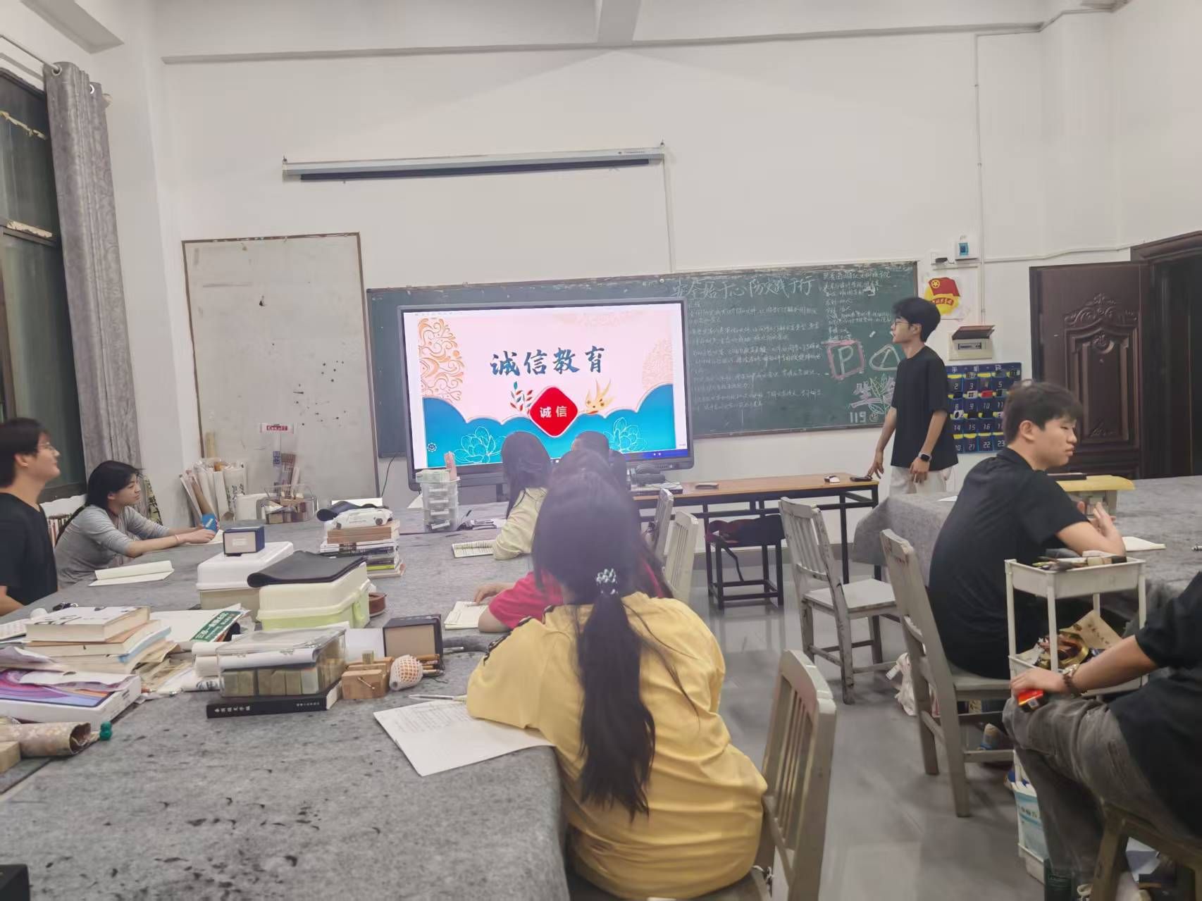 为进一步强化学院考风考纪建设,营造公平公正的考试环境,6月5日,美术与设计学院各班级组织召开诚信考试教育主题班会。本次班会由各班班主任主持,旨在引导学生树立诚信意识,严守学术底线。