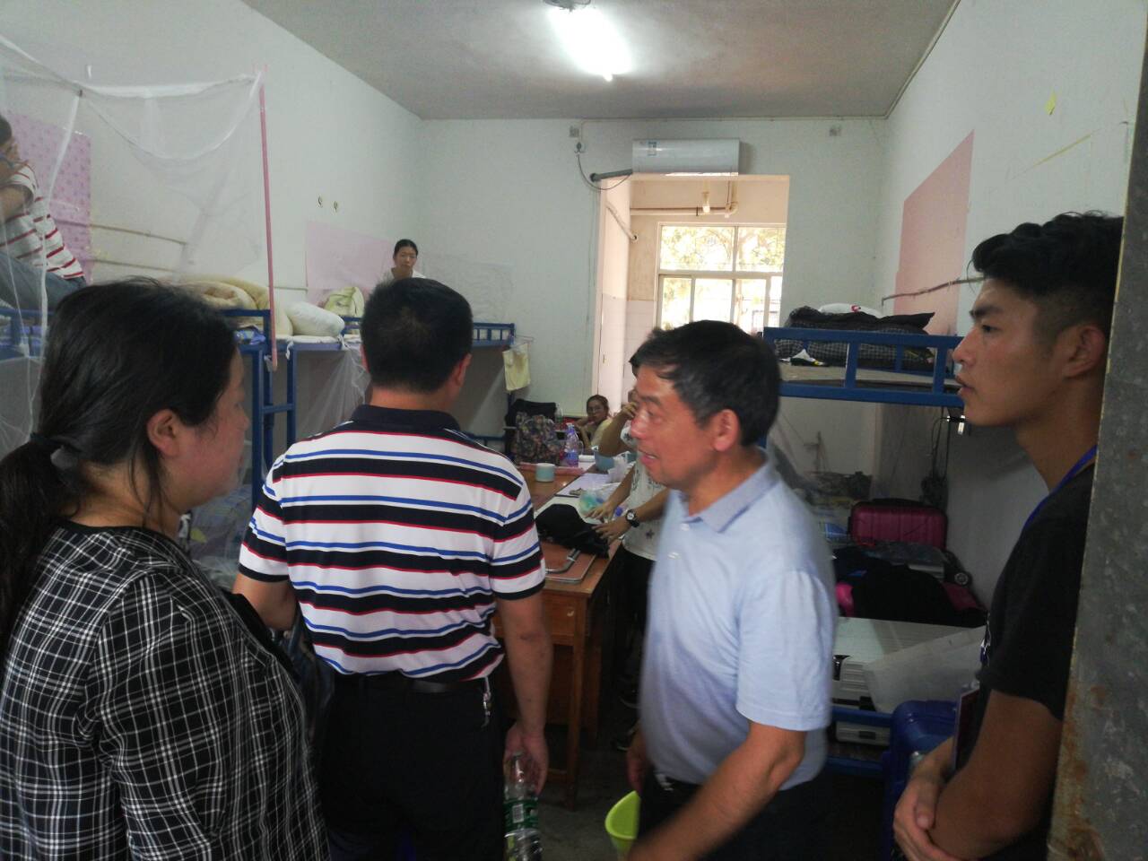 9月8日下午三时,烈日炎炎,美术与设计学院今年迎新工作接近尾声。太阳成官网领导心系新生,院党总支书记谢光绎、党总支副书记易俊及全体辅导员对新生宿舍逐一走访。