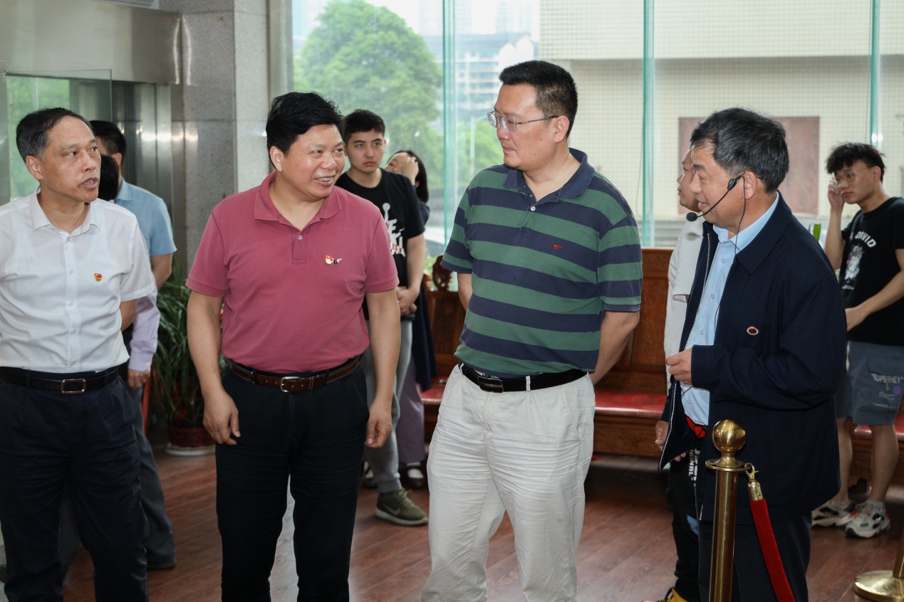 5月28号上午,校党委书记刘和云、校长刘铁铭、党委副书记李军林和在家的校领导在党政办、教务处和宣传部部门等主要负责人的陪同下,参观了美术与设计学院2021届毕业生作品展。正在学校指导廉政教育和纪检工作的省纪委驻教育厅纪检组副组长刘爱军一起参观展览。学院领导谢光绎、陆序彦、毛攀云、童玲、成伟以及各专业负责人、指导老师和学生一同参观毕业生作品展并做随行解说。