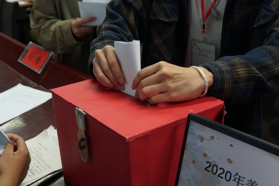 晚上7点,大会准时开始,由19级各部门的部长候选人进行发言,表明他们留任的理由和优势,表示身为学生会的成员会做好自己的本职工作。接下来是18级主席候选人讲话,发表了他们身为部长对下一届部长的期望和竞选主席的决心,学工办主任左玉洁表示希望可以选出一支更加精湛的队伍。发言完毕后,在场学生会干部秉承着以公平公正的原则进入投票环节。最后由17级学生会主席代表发言,希望下一届的主席、部长及20级干事加强自己的思想作风,努力提高自身的综合素质,做事尽职尽责,加强团队凝聚力。大会最后,由左玉洁老师给上一届主席和部长颁发聘书,并代表学校肯定了他们工作态度,并激励新一届的干部们更加努力热情的投入工作之中。