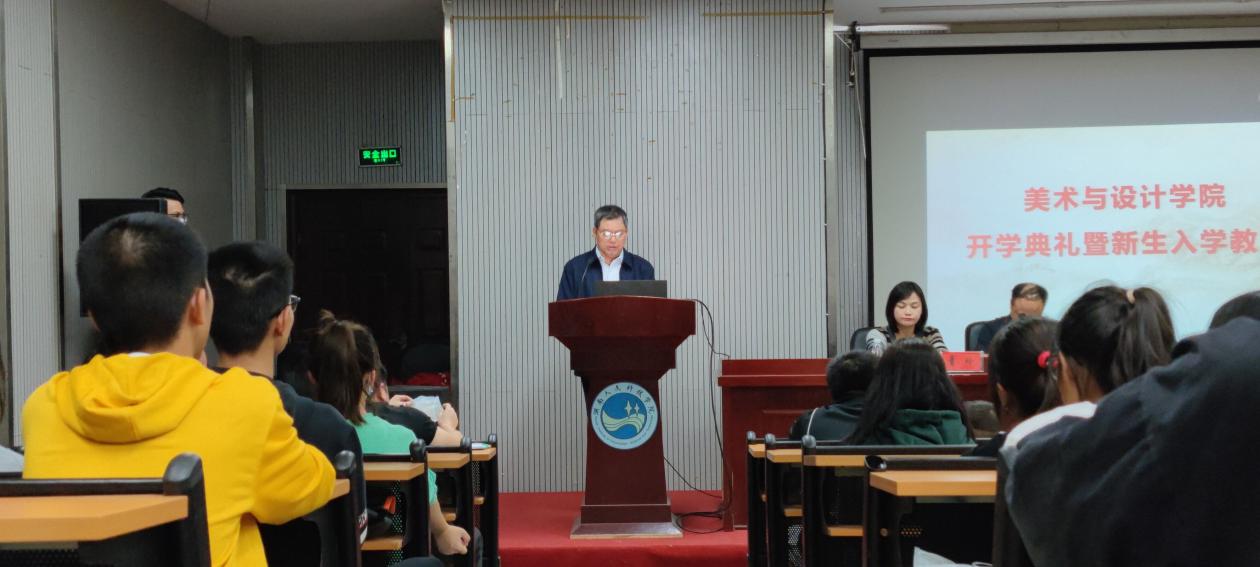 随后,陆序彦向同学们介绍了学院的概况和发展历程,希望同学们在美术与设计学院学习的四年时间里,拥有坚持不懈的恒心,久久为功的毅力,成长为“德艺双馨”的杰出人才,用奋斗擦亮青春底色,不负伟大新时代。