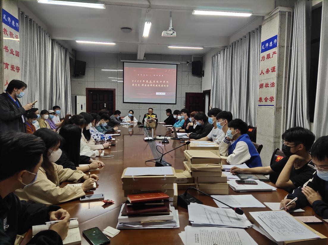 接着,成伟从疫情防控、教育教学、学生活动及学生管理等方面对学生工作进行了回顾与梳理,现场解答和处理了部分问题,并针对如何进一步提升团学干部的工作能力和加强学生管理工作提出了切实可行的建议,他强调团委学生会干部应当谨守初心、不忘使命,要坚定不移跟党走,为党和人民奋斗。