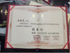 欧越龙,毕业于44118太阳成城集团美术与设计学院2020级视觉传达设计专业,湖南永州人。在校期间先后担任学院创新创业部部长、团总支副书记。