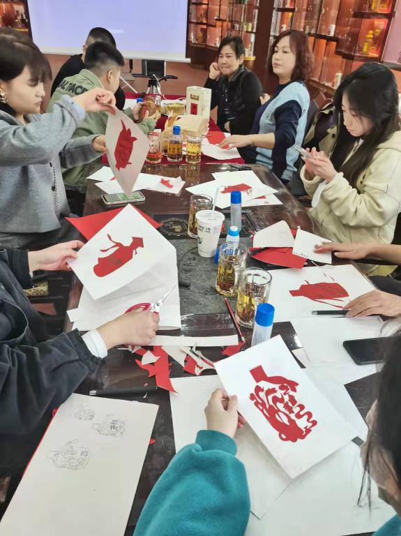 活动中,大家都全力投入到剪纸中。开始时大家手法有些生疏,但经过童玲的悉心指导后都很快掌握了剪纸技巧。经过近 2 小时的努力,一个个造型可爱、充满茅台元素的作品就剪好了。大家欣赏着自己精心剪出的作品,脸上洋溢着满意的笑容,纷纷表示,自己不仅了解和学习了中国的传统文化, 而且也在富有趣味和创新的剪纸过程中培养了兴趣爱好。