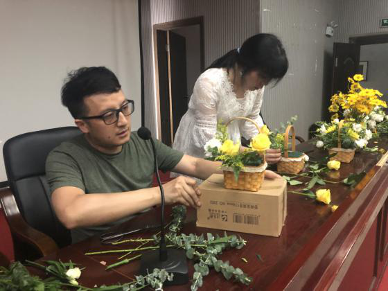 环境设计专业学生用鲜花进行现场实操--自然系的插花训练