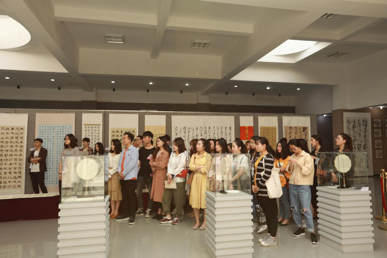 开幕式后,领导和师生们在蒋传存老师的介绍下参观了作品展。