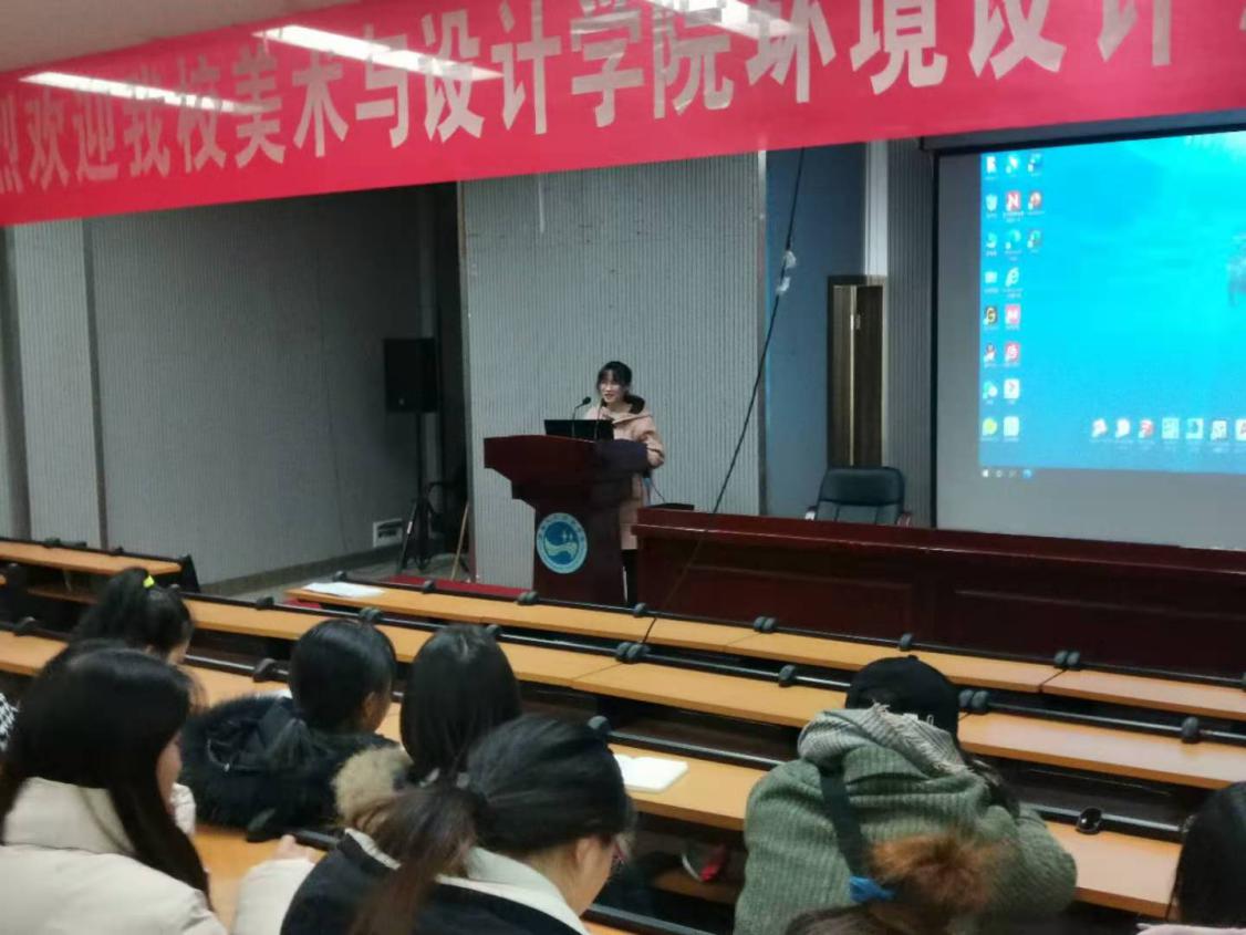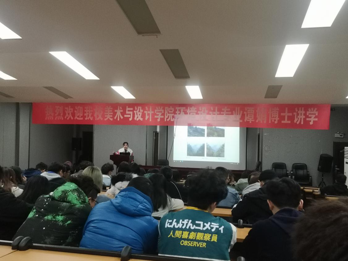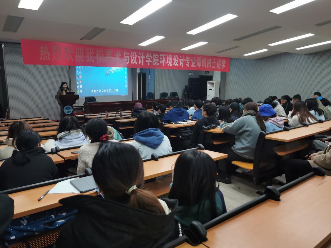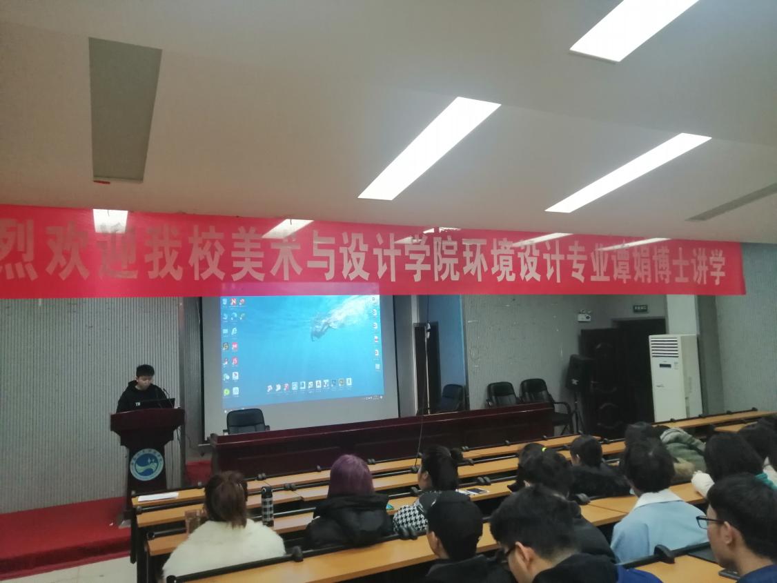 11月25日晚,环境设计教研室主任谭娟在逸夫楼报告厅作了“乡村振兴背景下的设计理论到实践”的主题讲座,环境设计专业部分教师及2018级、2019级、2020级的学生到场参加了此次讲座。