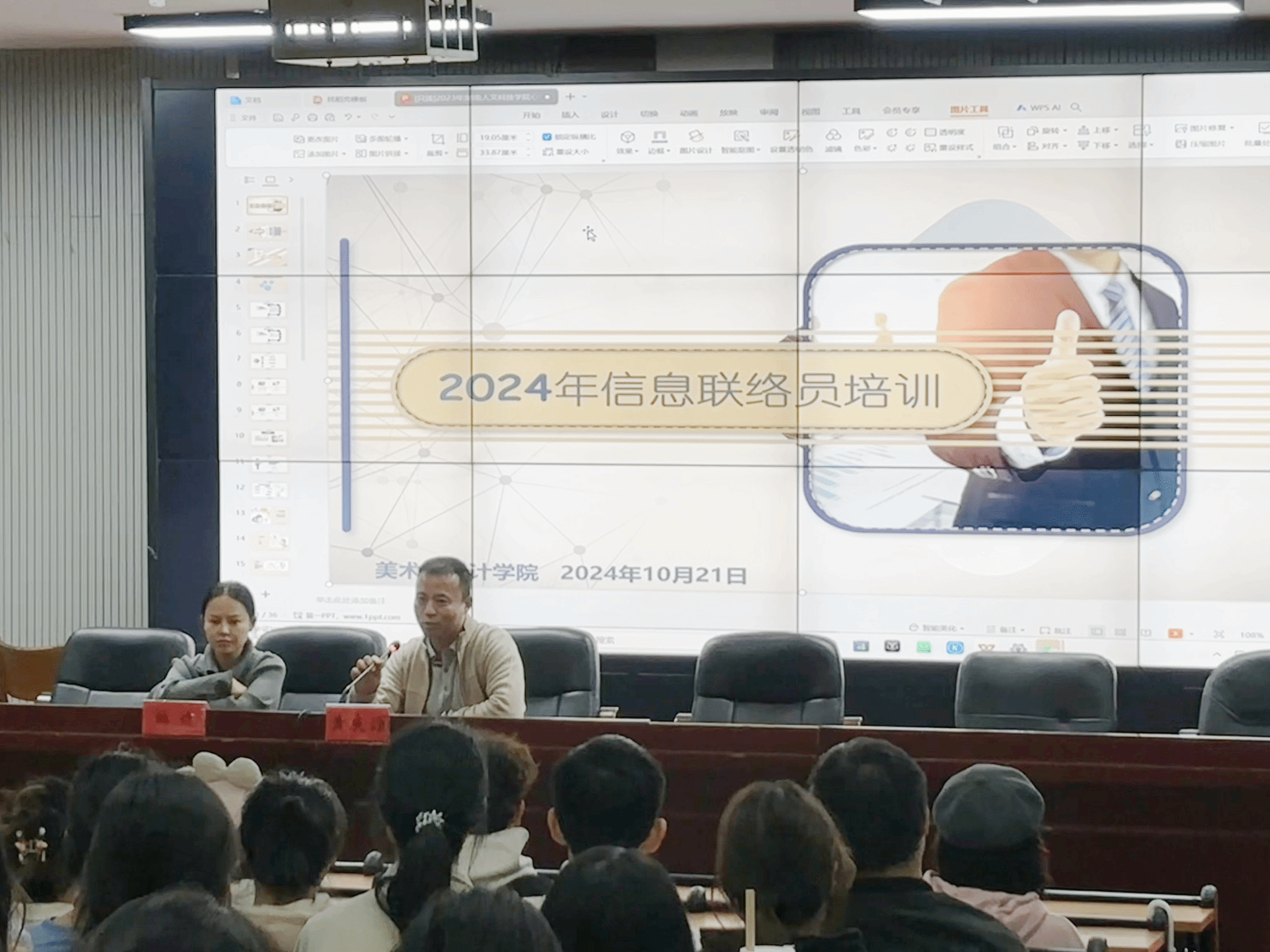 2024年10月21日中午,为了进一步宣传,推广心理健康知识,增进学生的心理保健意识,44118太阳成城集团美术与设计学院在逸美楼一楼报告厅举办“信息联络员培训大会”,此次大会由全体心里干部以及24级,23级,22级各班心理委员和信息联络员共同参会。党总支副书记黄庆源出席并作讲话,姚婧老师主讲。
